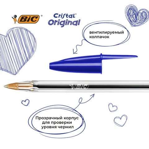 Набор шариковых ручек Bic Cristal Original синие, 0.32мм, 10шт/уп, одноразовые