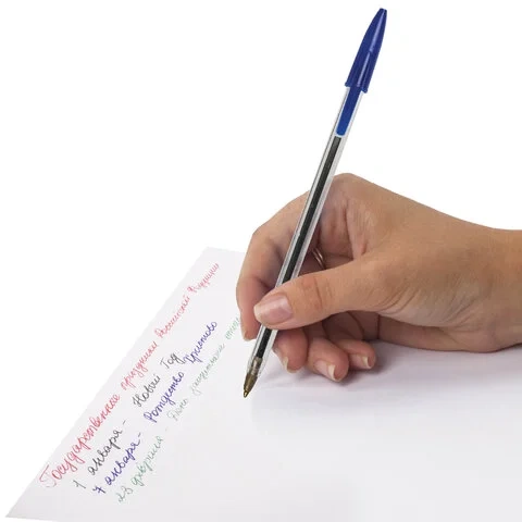 Ручки имеют прозрачный шестигранный корпус. Детали выполнены в цвет чернил. Длина корпуса 13,5 см. Диаметр пишущего узла 1 мм создает ровную линию письма, равную 0,5 мм. В наборе 4 цвета: синий, чёрный, красный, зеленый.