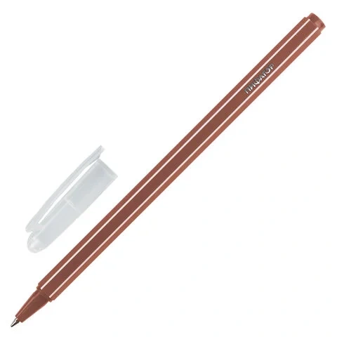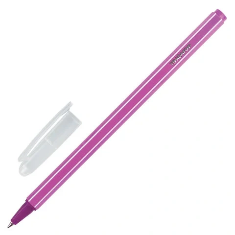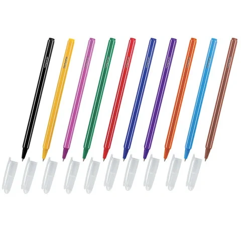 Набор одноразовых шариковых ручек из 10 цветов: голубой, красный, зеленый, чёрный, розовый, желтый, коричневый, синий, фиолетовый и оранжевый.