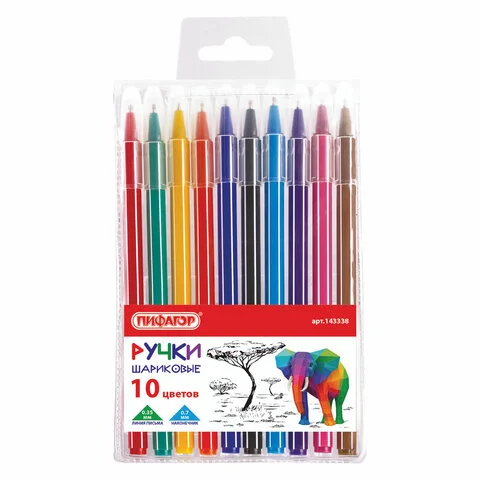 Набор шариковых ручек Пифагор Веселые зверята 10 цветов, 0.35мм, одноразовые