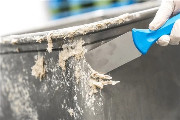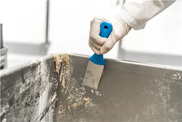 Этот ручной скребок имеет нержавеющее гибкое стальное лезвие с защищенными закругленными углами, высокопрочное крепление и специальный эргономичный хват для руки. Он идеально подходит для удаления липких отложений, которые засоряют щетки, а также для удаления засохших или подгорелых загрязнений и и ингредиентов