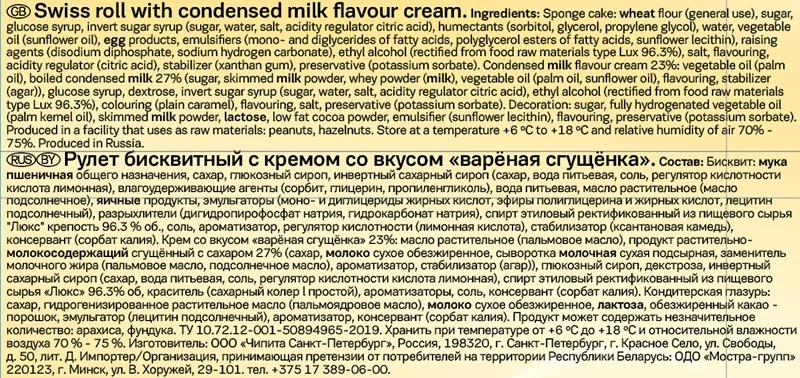 Рулет бисквитный со вкусом вареная сгущенка от бренда 7 Days - это традиционный десерт, приготовленный по оригинальному рецепту. В составе начинка из вареной сгущенки, которая делает вкус угощения незабываемым. Аппетитный бисквитный рулет идеально дополнит чашечку бодрящего чая или свежесваренного кофе.