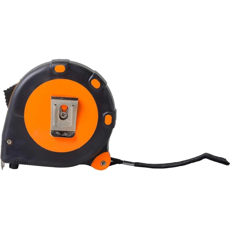 Корпус изготовлен из ударопрочного пластика с обрезиненными вставками, что повышает устойчивость к повреждениям при падениях и делает инструмент удобным в использовании. Три варианта фиксации ленты позволяют надёжно удерживать полотно в различных положениях, обеспечивая комфорт и точность при работе.