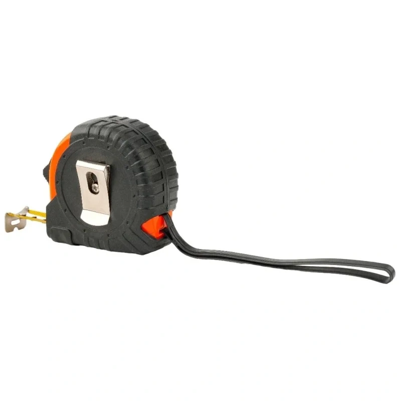 Корпус инструмента выполнен из прочного пластика с обрезиненной поверхностью, которая защищает рулетку при случайных падениях и улучшает сцепление с рукой. Плавающий зацеп компенсирует толщину металлического крючка, обеспечивая точность измерений как 'на вынос', так и 'в упор'. Благодаря специальному окошку в зацепе, инструмент можно использовать для разметки по дуге - как циркуль.