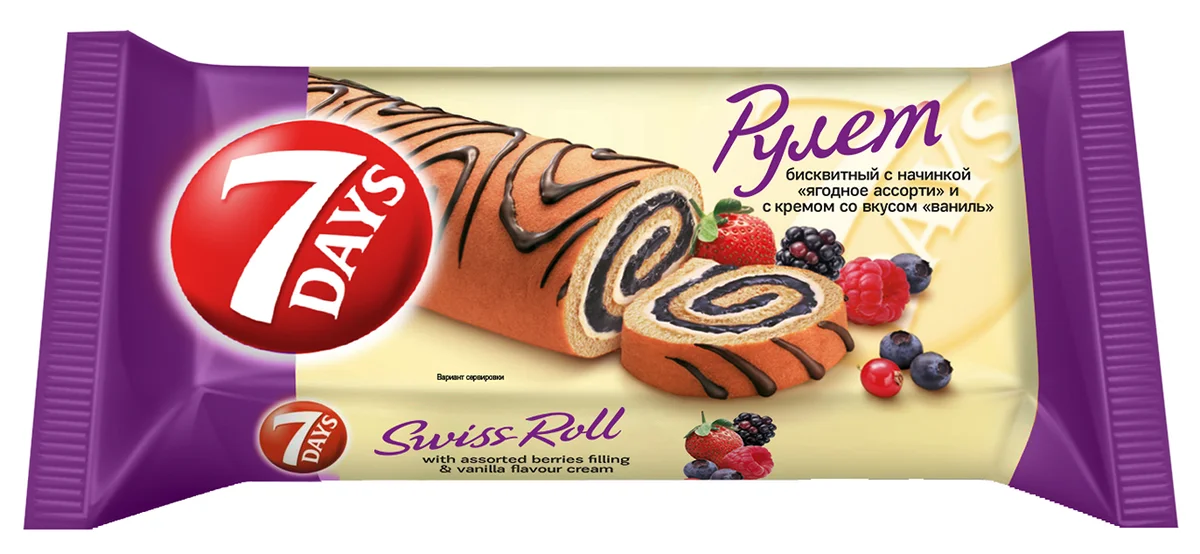 Рулет бисквитный 7 Days ягодное ассорти и ваниль, 200г