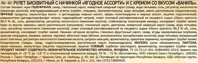 Рулет Русский Бисквит ягодное ассорти, 175г