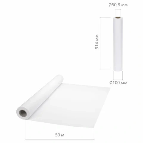 Рулон имеет размер 914 мм, что соответствует формату А0+. Длина рулона - 50 м, внутренний диаметр втулки - 50,8 мм.