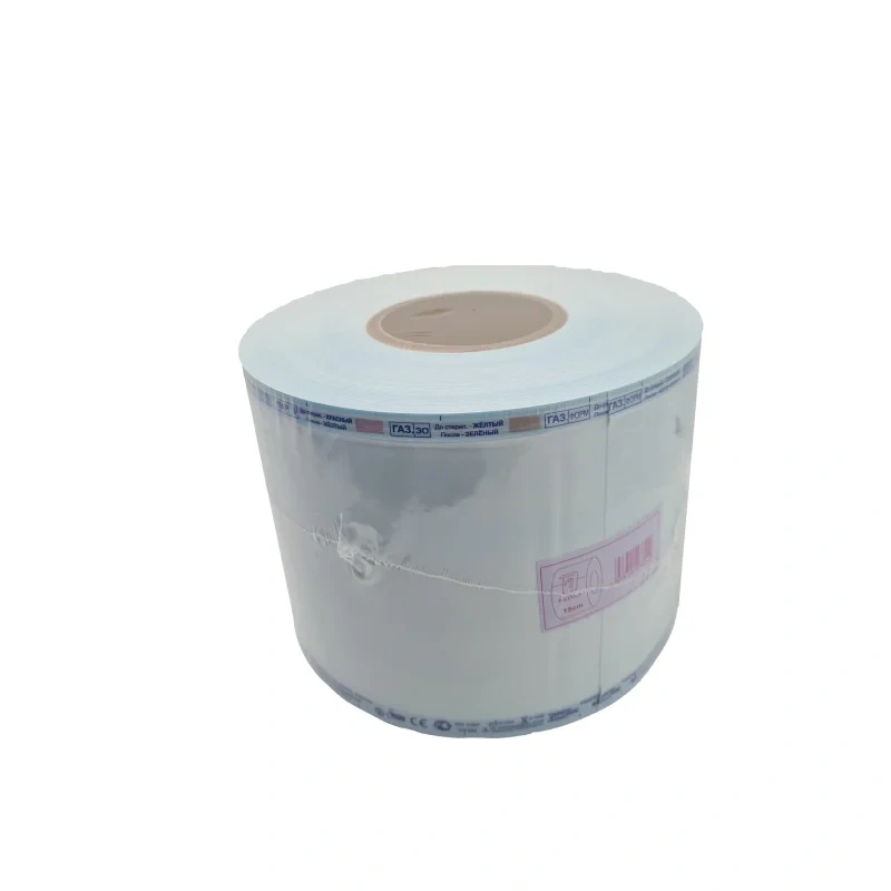 Рулон для стерилизации комбинированный EuroType для паровой/газовой стерилизации 150 мм x 200 м. Стерилизационные рулоны изготовлены из: - непрозрачная сторона - медицинская бумага (60 г/кв.м.), на эту сторону наносится маркировка; - прозрачная сторона - прозрачная полимерная пленка (полиэстер = 12um + полипропилен = 40um). Прозрачная и непрозрачная стороны соединены между собой термошвами. Прозрачная сторона позволяет легко идентифицировать упакованные изделия. На место шва рулонного материала нанесены обозначения: - торговая марка; - маркировка типоразмера; - цветные химические индикаторы в виде двух параллелепипедов, под которыми написано название соответствующего стерилизующего агента с описанием цвета, приобретаемого индикатором после стерилизации. Для парового метода - индикатор голубого цвета, после стерилизации приобретает коричневый цвет; для газового метода с применением окиси этилена - индикатор розового цвета, после стерилизации приобретает желтый цвет; для газового метода с применением формальдегида - индикатор желтого цвета, после стерилизации приобретает зеленый цвет; - предостережение 'не использовать, если упаковка повреждена', 'хранить в прохладном сухом месте'; - обозначение: 'одноразовое изделие'. Стерилизационные рулоны, изготавливаемые из рулонного материала, запечатывают с помощью термосварочных аппаратов. При использовании рулонного материала из него предварительно готовят пакеты. С помощью специальных режущих устройств нарезают отрезки, соответствующие длине изделий, подлежащих упаковыванию, с учетом запаса на свободное размещение изделия и ширину швов. Одну сторону запечатывают с помощью термосварочного аппарата. Правильно выполненный термошов должен быть не менее прочным, чем готовые боковые швы, при этом бумага и полимерная пленка не должна быть прожжена. Ширина термошва должна быть не менее 8 мм. В этой области окрашенная полимерная пленка приобретает более темный оттенок, что позволяет по равномерности окраски визуально контролировать целостность термошва.