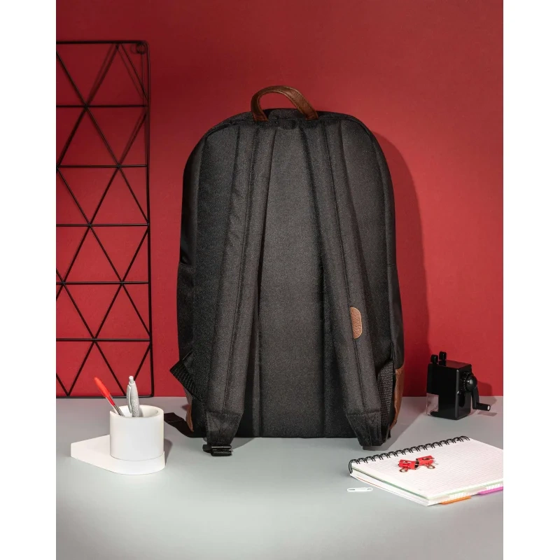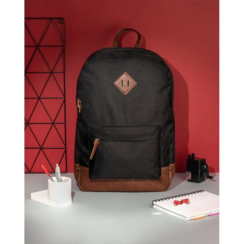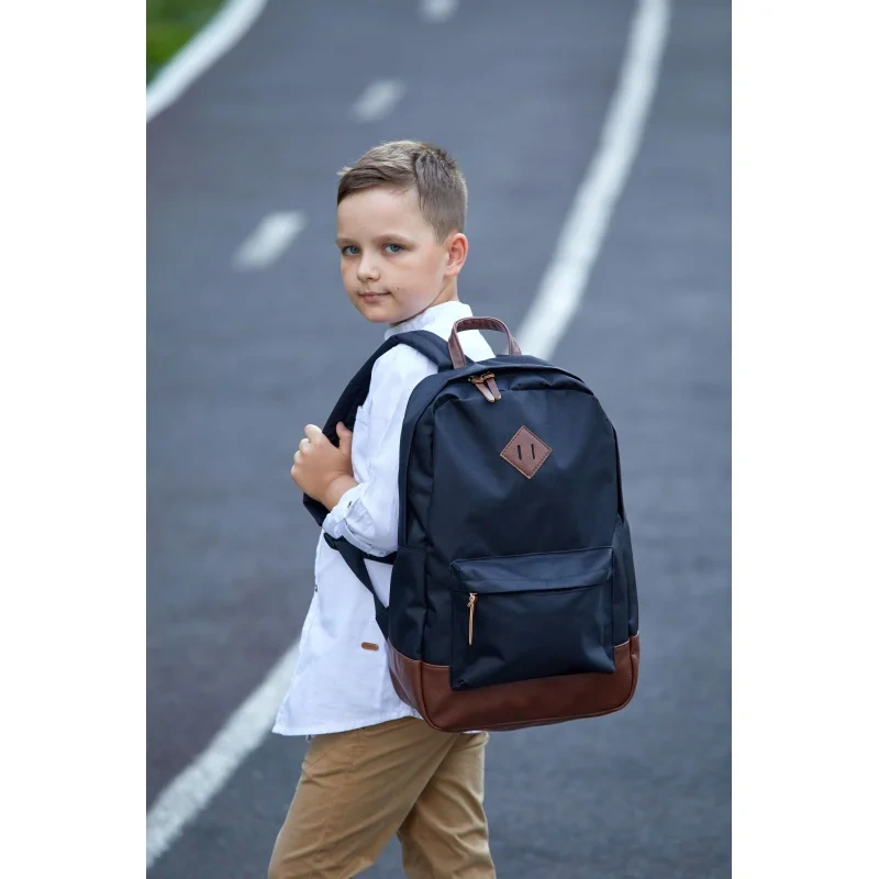 Молодёжный рюкзак с одним отделением выполнен из полиэстера и дополнен вставками из кожзаменителя. Спереди расположен карман на молнии для удобного хранения мелких вещей. Рюкзак оснащён мягкой спинкой и регулируемыми лямками.