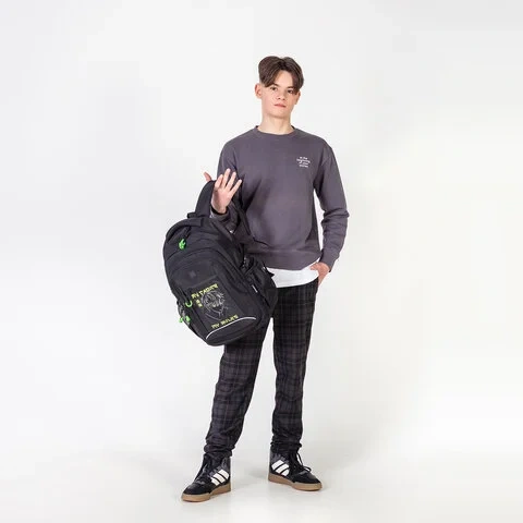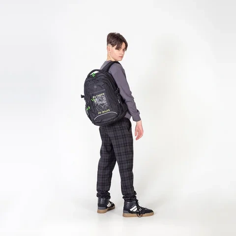 Рюкзак изготовлен из надежного и качественного материала – полиэстера. Благодаря специальной обработке материал обладает водоотталкивающим эффектом. Сдержанный, но в тоже время оригинальный принт выполнен с использованием специальной безопасной краски. Серые элементы дизайна обладают светоотражающим эффектом, что способствует дополнительной безопасности владельца в условиях недостаточной видимости.