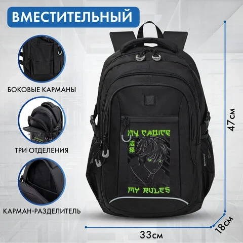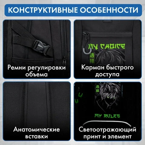 Рюкзак BRAUBERG CONTENT универсальный, 3 отделения, светоотражающий принт, Anime choice, 47х33х18 см