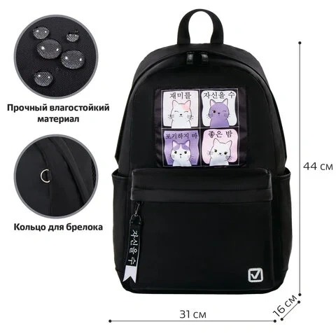 Рюкзак BRAUBERG FASHION CITY, универсальный, 'Friendly cats', 44х31х16 см, 229965