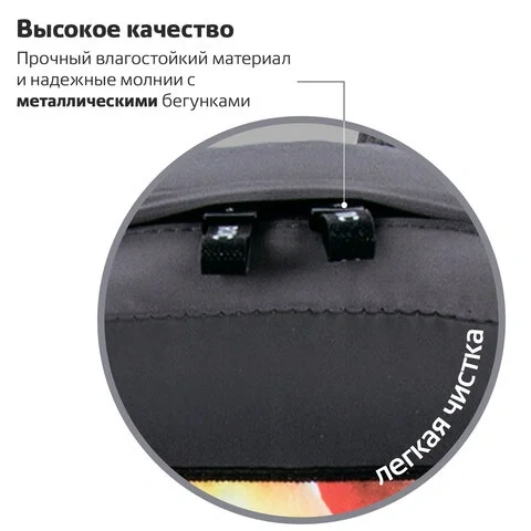 Внутри основного отделения предусмотрен фиксатор для тетрадей.