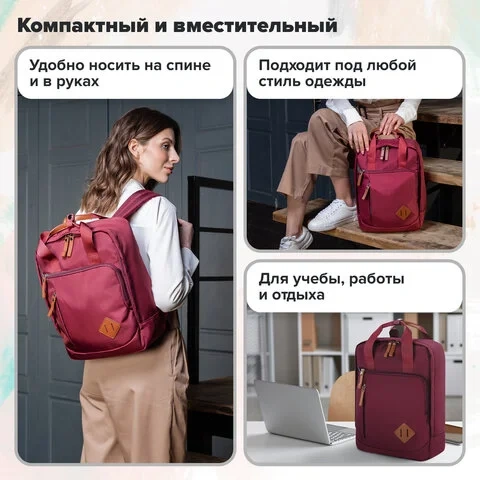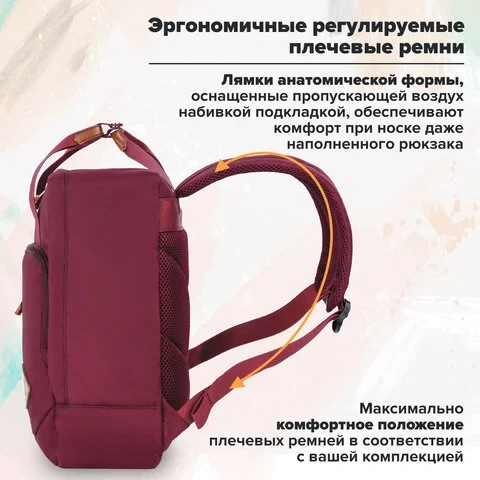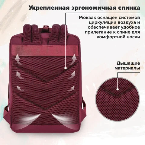 Рюкзак BRAUBERG FRIENDLY молодежный, бордовый, 37х26х13 см, 270090