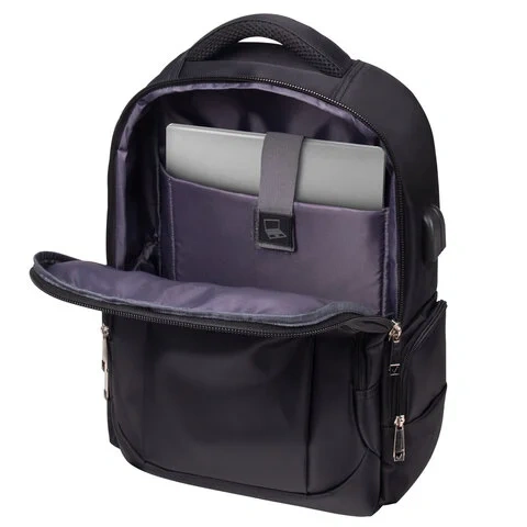 Множество карманов, два вместительных отделения позволяют упорядоченно разложить большое количество вещей различных размеров, в зависимости от целей использования рюкзака. Важная деталь – это отделение для ноутбука с диагональю экрана до 15,6'. Плотные стенки и дно защитят гаджет от механических повреждений, а эластичная лента на липучке надежно зафиксирует ноутбук.