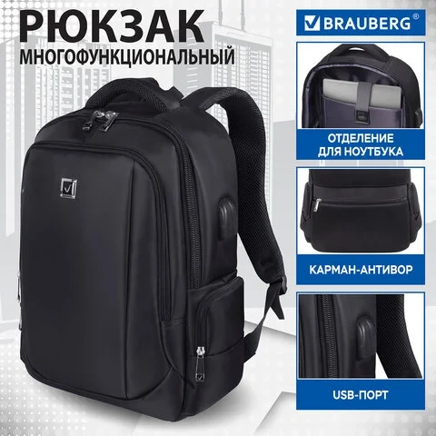 Рюкзак BRAUBERG FUNCTIONAL универсальный с отделением для ноутбука, USB-порт, 'Leader', 45х32х17 см,