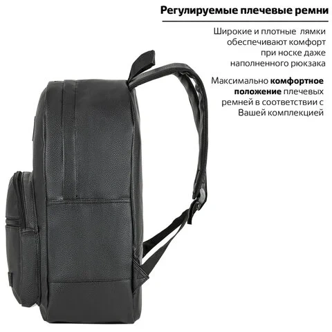 Рюкзак BRAUBERG молодежный, с отделением для ноутбука, 'Урбан', искусственная кожа, черный, 42х30х15
