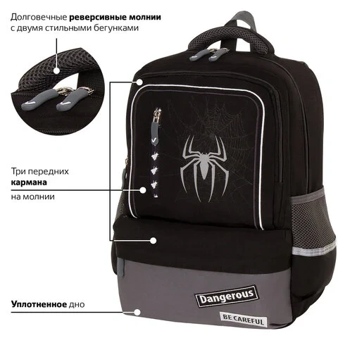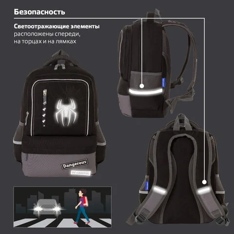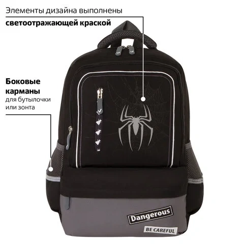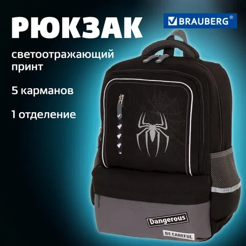 Рюкзак BRAUBERG STAR, 'Spider', черный, 40х29х13 см, 229978