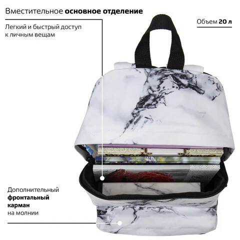 Рюкзак BRAUBERG универсальный, сити-формат, 'Marble', 20 литров, 41х32х14 см, 229886