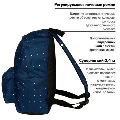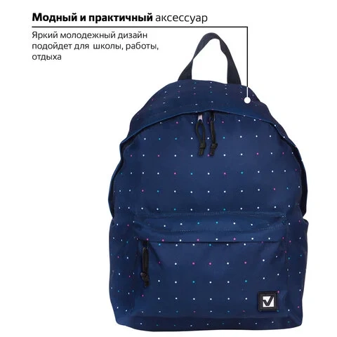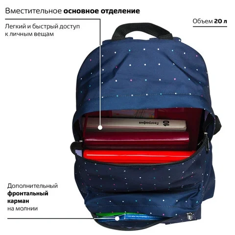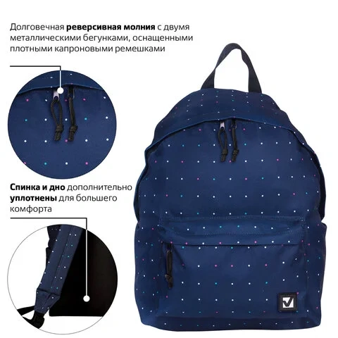 Рюкзак BRAUBERG универсальный, сити-формат, темно-синий, 'Полночь', 20 литров, 41х32х14 см, 224754