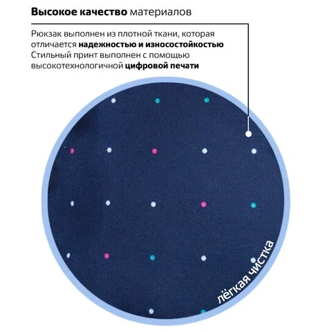 Рюкзак изготовлен из прочного качественного полиэстера, который легко чистится.