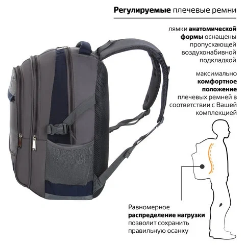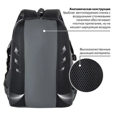Укрепленная вентилируемая спинка рюкзака с анатомическими вставками обеспечивает удобное прилегание к спине. Это способствует равномерному распределению нагрузки, делая эту модель комфортной и безопасной для ежедневного использования.