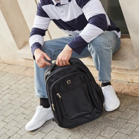- Прочная и мягкая эргономичная ручка позволяет комфортно носить рюкзак не только на спине, но и в руках.