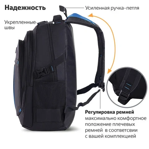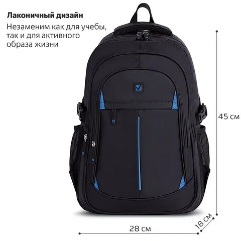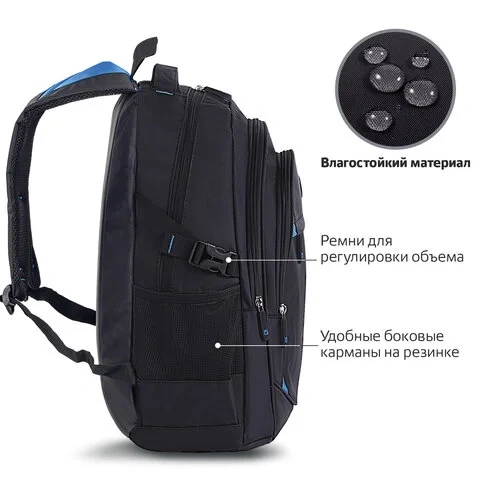 Рюкзак Brauberg Вихрь, черный, синие вставки