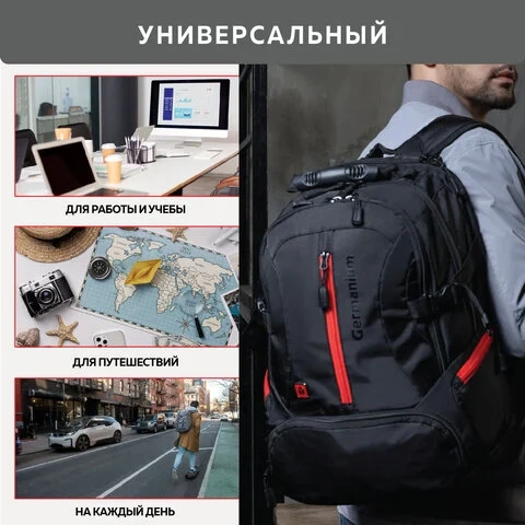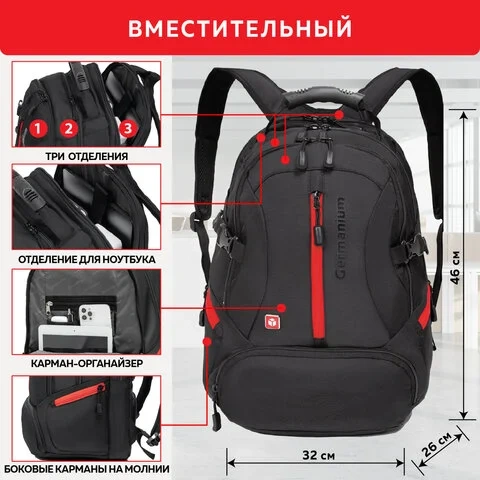 Рюкзак GERMANIUM 'S-03' универсальный, с отделением для ноутбука, увеличенный объем, черный, 46х32х2