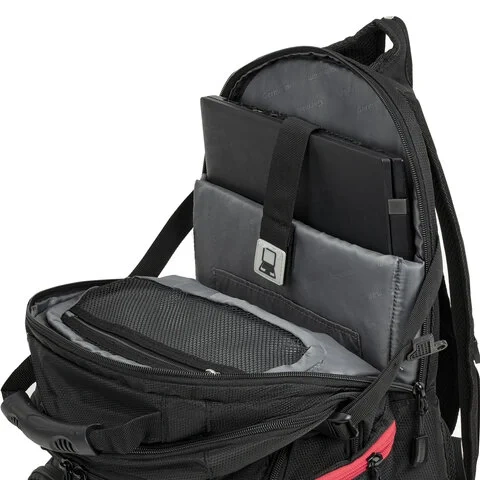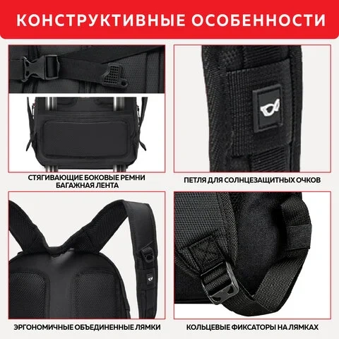 Отличительной особенностью этого рюкзака является вместительность – его объем составляет 38 литров. Для удобства в использовании рюкзак GERMANIUM оснащен усиленной ручкой в прочном кожухе для переноски, боковыми ремнями для регулировки объема и специальными кольцевыми фиксаторами на лямках, чтобы их можно было идеально подогнать по размеру и они не болтались.