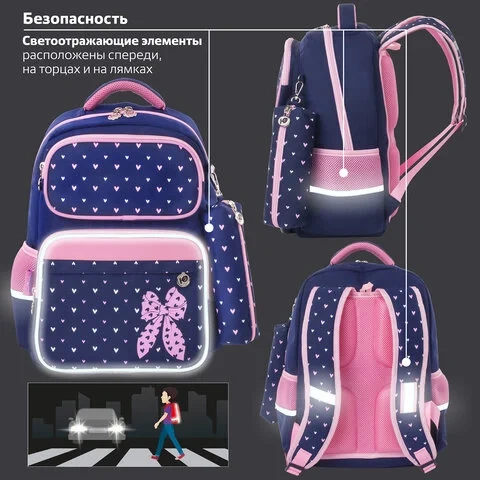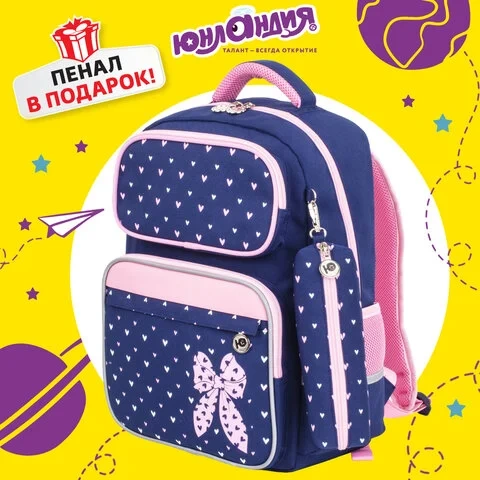 Рюкзак ЮНЛАНДИЯ COMPLETE, с пеналом в комплекте, эрго-спинка, 'Pink bow', 42х29х14 см, 229972
