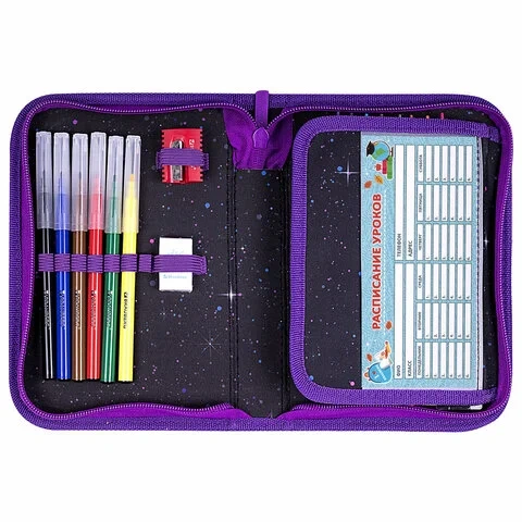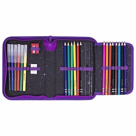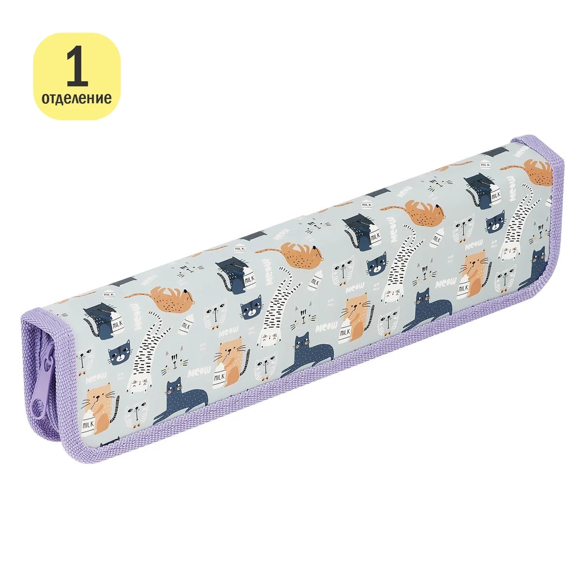 Пенал Brauberg Neon cat 21х14см, 1 отделение, 1 откидная планка, 24 предмета