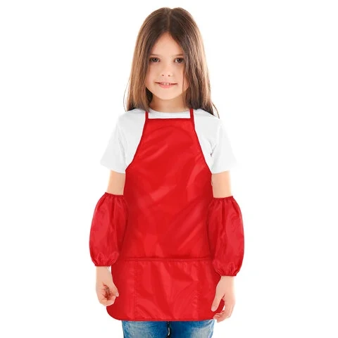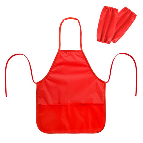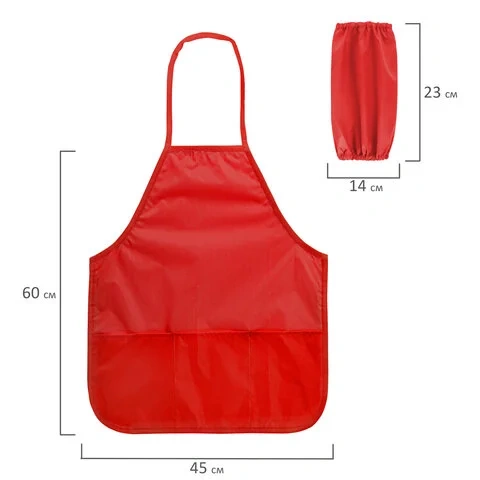Фартук с нарукавниками для уроков труда ПИФАГОР, 3 кармана, увеличенный размер, 45x60 см, красный, 2