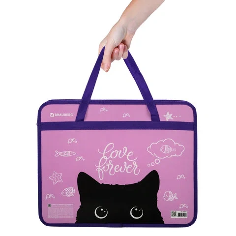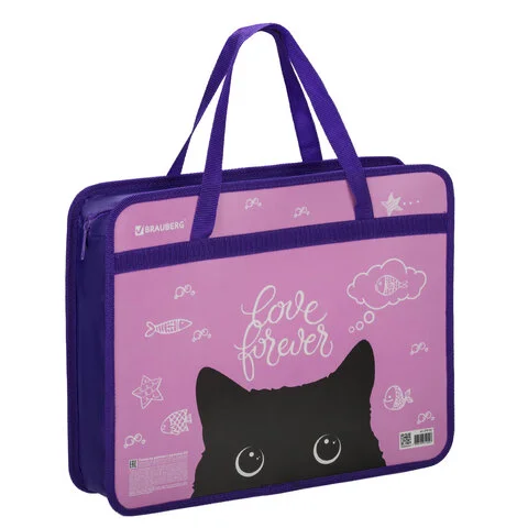 Папка с ручками BRAUBERG А4, 1 отделение, пластик, молния сверху, 75 мм, 'Black Cat', 270122