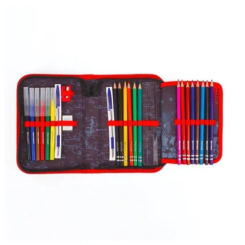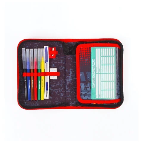 Пенал с наполнением BRAUBERG, 1 отделение, откидная планка, 24 предмета, 21x14 см, 'Perfomance Racin