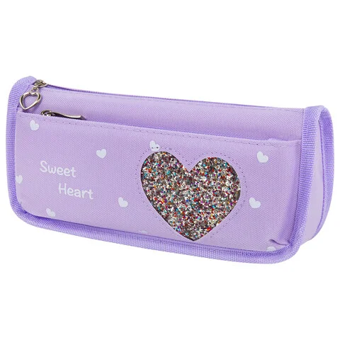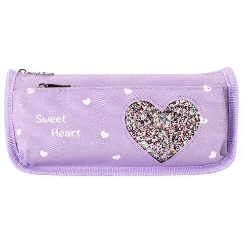 Пенал-косметичка ЮНЛАНДИЯ, 2 отделения, полиэстер, 'Heart', фиолетовый, 21х6х9 см, 270259