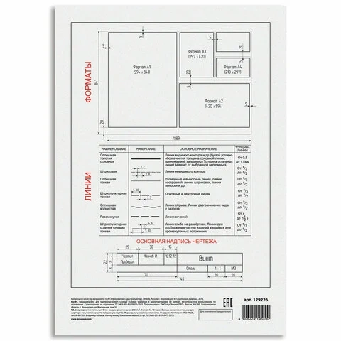 Папка для черчения БОЛЬШОГО ФОРМАТА (297х420 мм) А3, 10 л., 200 г/м2, без рамки, ватман ГОЗНАК КБФ,