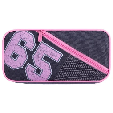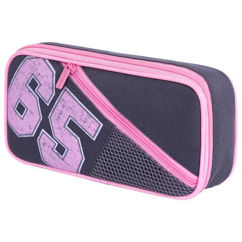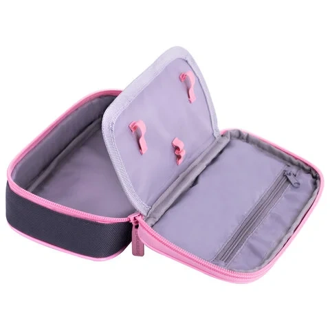 Пенал-косметичка BRAUBERG, 1 отделение, 2 кармана, органайзер, полиэстер, 21x10x5 см, серо-розовый,