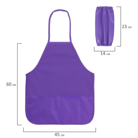 Фартук с нарукавниками для уроков труда ПИФАГОР, 3 кармана, увеличенный размер, 45x60 см, фиолетовый
