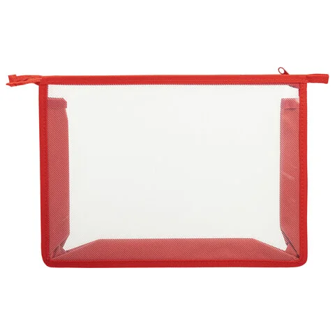 Папка для тетрадей А4 ПИФАГОР, пластик, молния сверху, прозрачная, красный, 272108