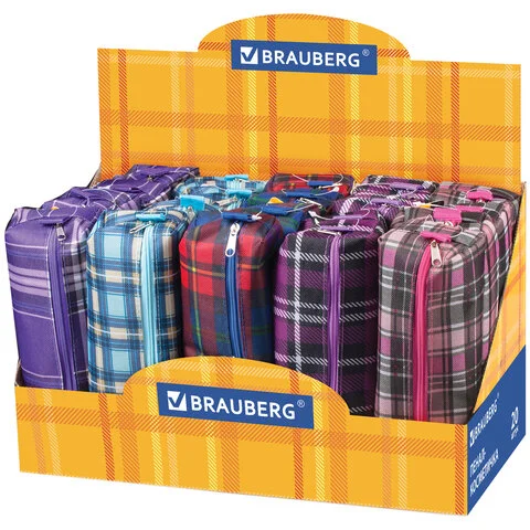 Пенал-косметичка BRAUBERG полиэстер, ассорти 5 цветов, 'Шотландия', 20х6х4 см, дисплей, 223897