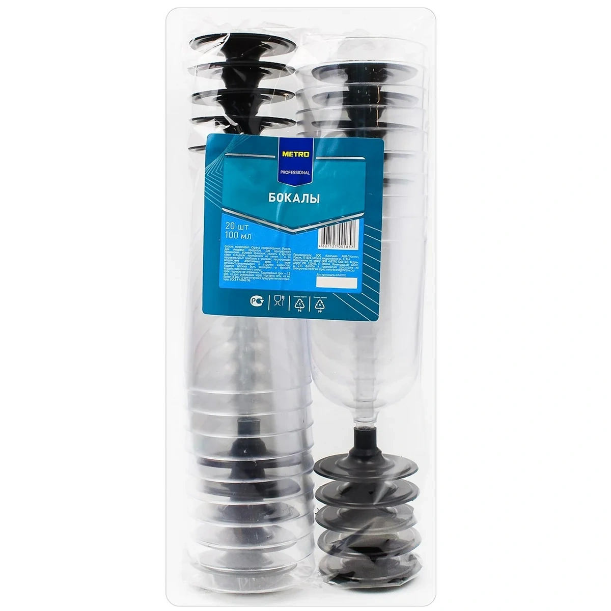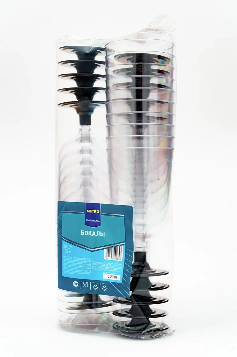 METRO PROFESSIONAL Бокалы 20 шт., 100 мл выполнены из высококачественного пластика. Материал обеспечивает посуде долговечность и надежность в использовании. В комплекте поставляется 20 стаканов на ножке. Каждый из них имеет вместительность 100 мл, чего достаточно для подачи большого объема напитка (минеральной воды, соков, газировок). Это отличный вариант для пикника, барбекю или домашней вечеринки в непринужденной обстановке. Минималистичный дизайн и элегантная форма подходят для розлива и подачи разных напитков, в основном – холодных. Благодаря компактной форме бокалы занимают минимальное место на столе или при хранении.