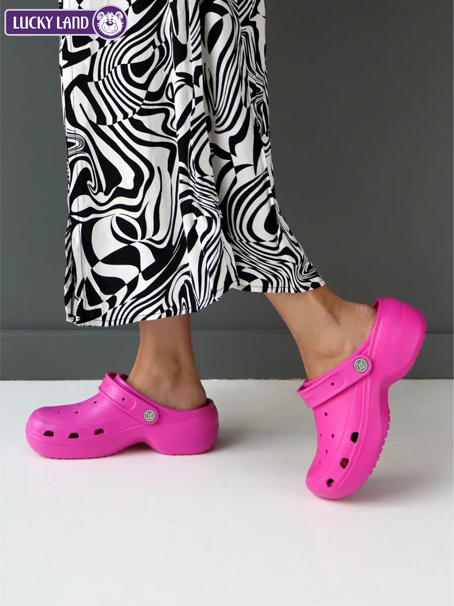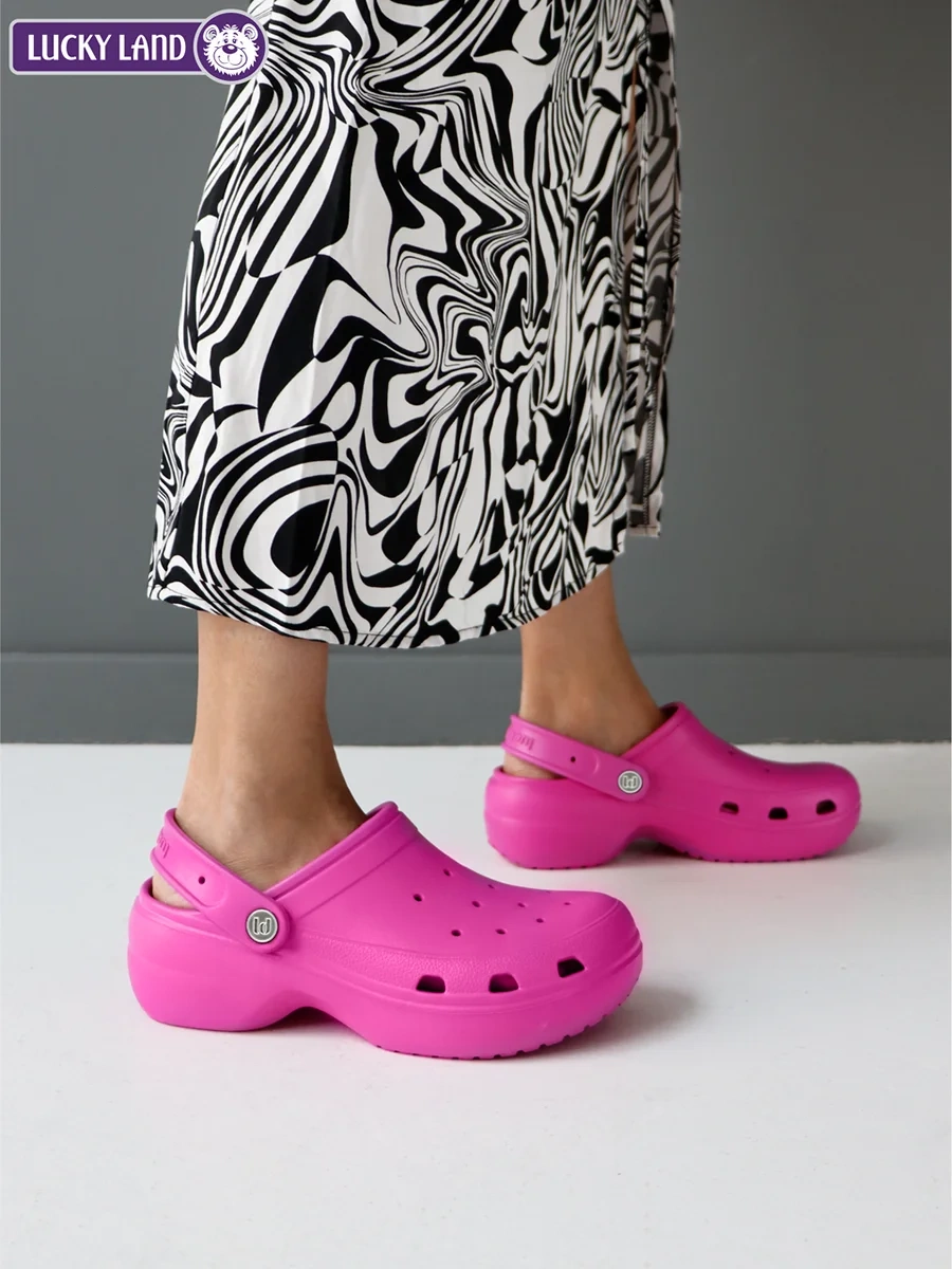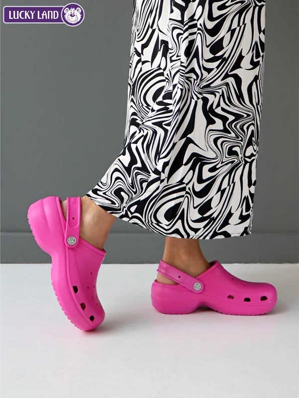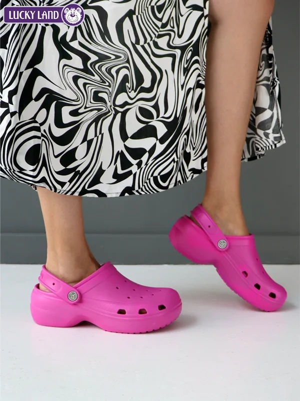 Стильные женские клоги на платформе каблуке - идеальный выбор для тех, кто любит комфорт. Сочетая в себе модный дизайн и практичность, эти сабо станут отличным вариантом не только для отпуска и города, но и как домашние тапочки. Они также популярны среди подростков, благодаря своему современному и модному дизайну. Гибкие и практичные сабо на платформе в несколько раз мягче, чем простые резиновые шлепанцы. Обеспечивают стопе поддержку и амортизацию, благодаря чему вы будете чувствовать себя комфортно даже после многих часов на ногах. Кроксы женские на платформе имеют ремешок для фиксации стопы при ходьбе. Сабо на каблуке отлично подойдут для отдыха на пляже или во время ваших поездок на море. Модель на высокой нескользящей подошве. Летние женские тапки идеально подойдут для спортзала, для дома и дачи. Отличный вариант обуви для пляжа и бассейна, а также сауны и спа. Дизайн нашей обуви - оптимальное соединение прекрасного внешнего вида, удобства и практичности.