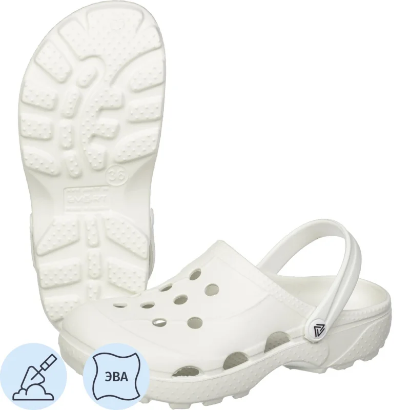 Сабо женские EVART Ола ЭВА белые размер 38. Обувь предназначена для сотрудников предприятий общественного питания, медицинских работников, работников пищевой и легкой промышленности.