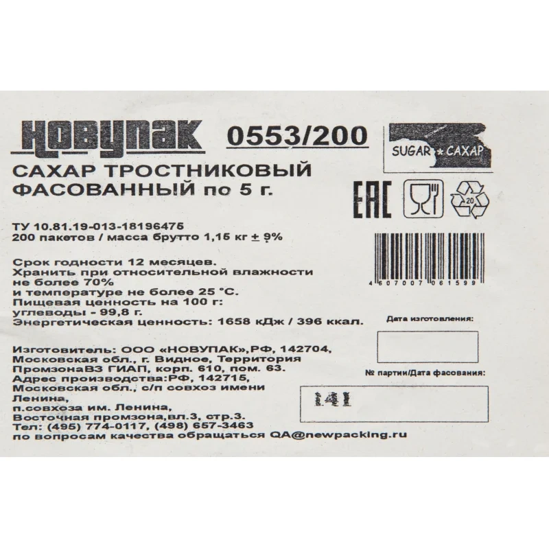 | Тип сахара | тростниковый |