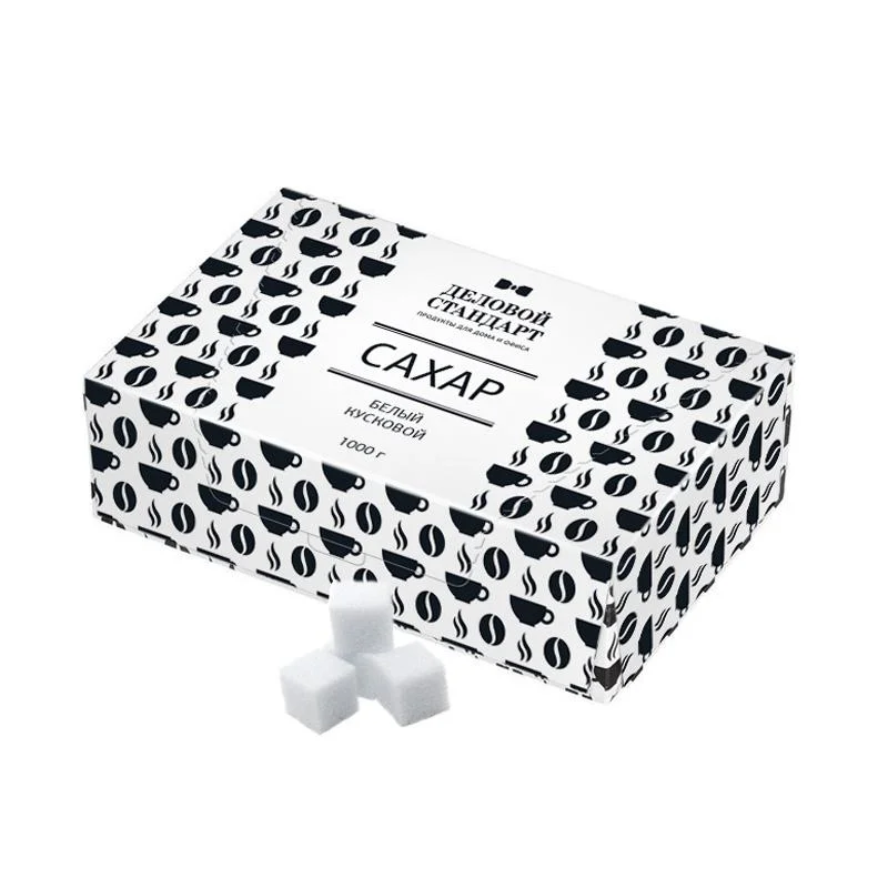 Сахар-рафинад «Деловой Стандарт» спрессован небольшими кусочками. Расфасован по 1 кг в картонные ко...