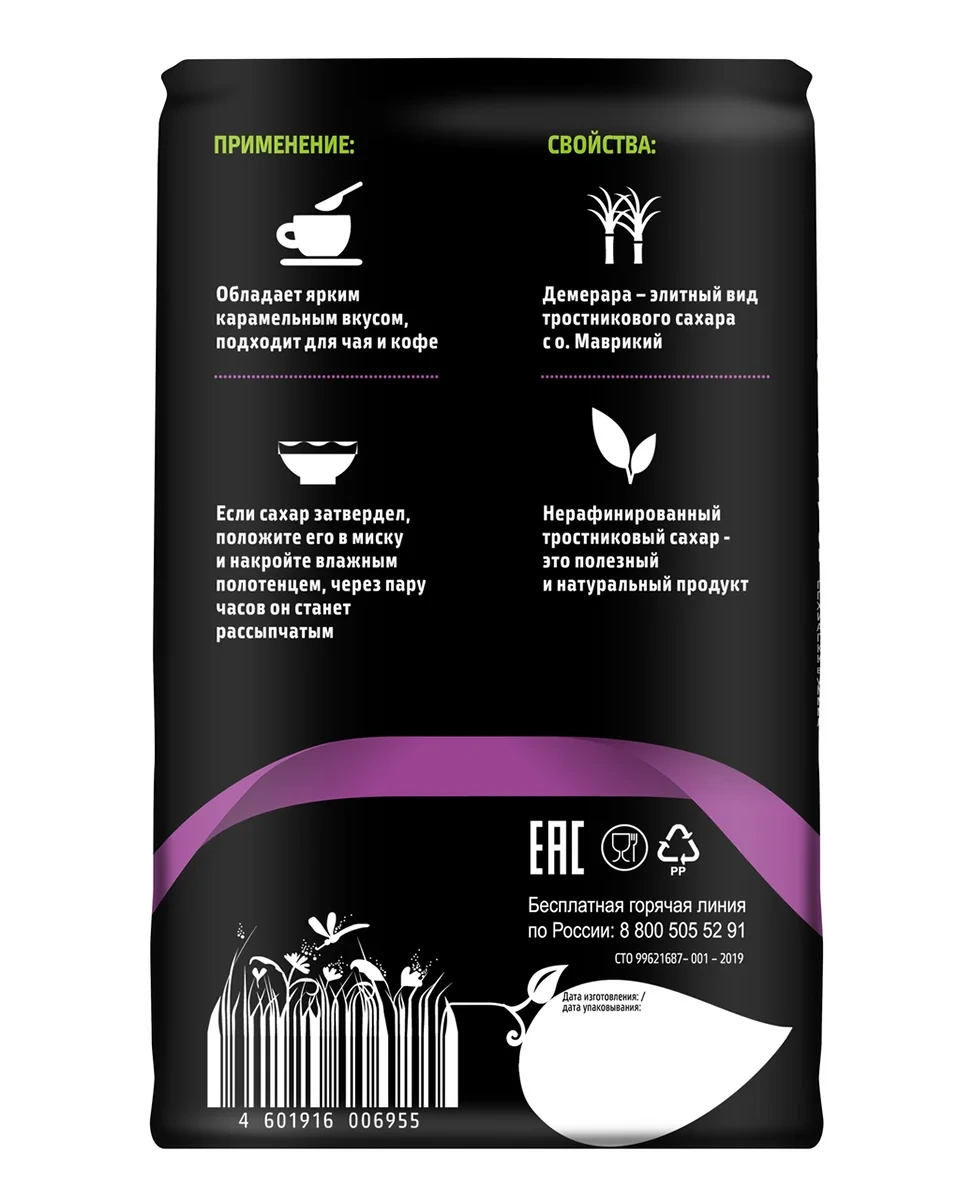 Коричневый сахар сорта Демерара с ярко выраженным ароматом и вкусом карамели используется в кулинари...
