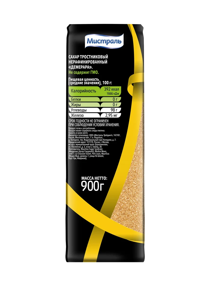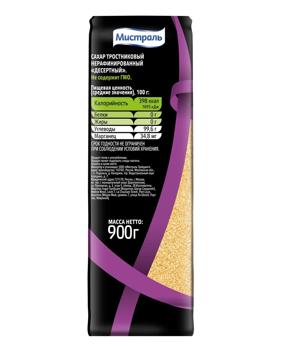 Сахар Мистраль тростниковый десертный нерафинированный, 900г