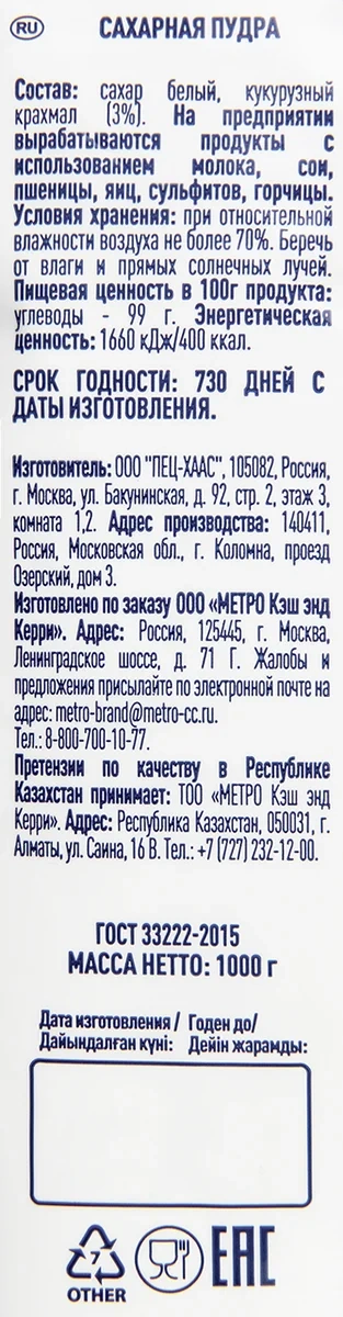 METRO Chef Пудра сахарная, 300г одинаково часто выступает и в роли ингредиента, и в роли украшения. ...