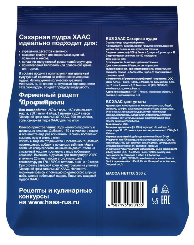 Сахарная пудра Haas для приготовления и украшения десертов, 250г